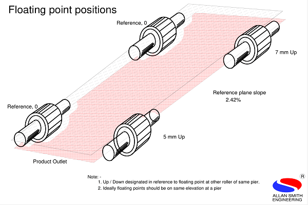 After collection of all required data and the analysis, we conclude the floating points on every support station and the corrections. The floating-point method is designed to bring a point on the reference plane to accomplish uniform load sharing with all support rollers